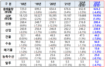 2023년 잠정배출량의 구체적인 수치 변화를 살펴보면, 전환 부문에서 발전량이 전년 대비 1% 감소했다.