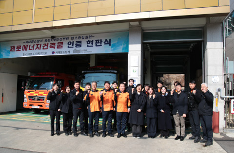 서대문소방서와 서울연구원은 기존 건물의 그린리모델링 실증 연구를 완료하고 3월 6일 제로에너지건축물 인증 현판식을 개최했다.