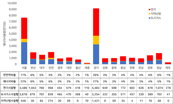 ※ 석탄, 석유 등 전기, 지역난방, 도시가스 외 에너지사용량은 반영되지 않았음