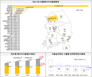 이는 그동안 신축건축물에 대한 단계적 에너지허가기준 강화, 노후건축물에 대한 그린리모델링 추진 등 건물에너지효율 향상을 위한 지속적인 녹색건축정책 추진이 에너지 사용량 감소 효과로 나타난 것으로 풀이된다.