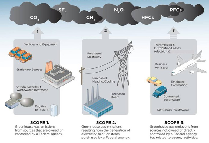 기업의 활동으로 발생하는 탄소발자국의 측정을 위해 온실가스의 배출원은 국제적으로 널리 사용되고 있는 온실가스프로토콜(Greenhouse Gas(GHG) Protocol)에 따라 3가지로 분류된다.