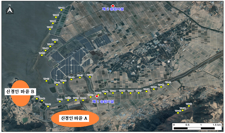 ○ 분쟁지역은 전남 영광군 ○○면 ○○로, ○○로 일원으로 피신청인의 풍력발전기(총 35기)는 신청인들의 주택에서 약 300 ~ 5,600 m 이격되어 있다.