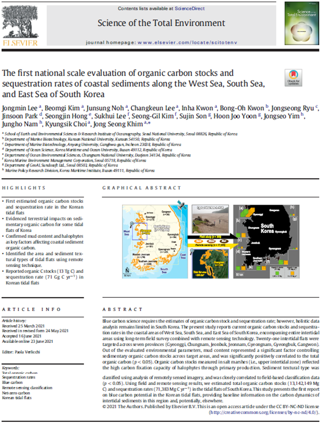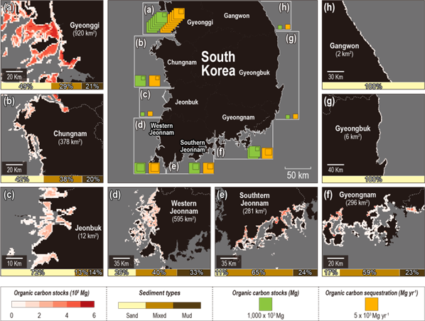 한국 전 연안 퇴적물내 유기탄소 저장량 및 유기탄소 연간 침적률에 대한 최초의 국가규모 평가