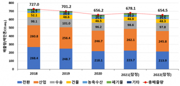 환경부 소속 온실가스종합정보센터가 ‘2022년 국가 온실가스 배출량 통계’ 확정에 앞서, 2022년 국가 온실가스 잠정배출량을 7월 31일 공개했다.