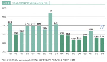 한국고용정보원이 통계청의 『주민등록인구통계』를 이용하여 2024년 3월 기준 소멸위험지역 현황과 특징을 살펴 본 결과, 시도 수준에서는 부산의 소멸위험지수 값이 0.490으로 광역시 중 최초로 소멸위험단계에 진입했다.
