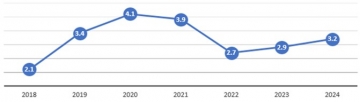 | 2018 | 2019 | 2020 | 2021 | 2022 | 2023 | 2024 |