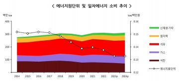 * 에너지원단위 : 부가가치 한 단위를 생산하기 위해 투입된 에너지의 양으로서, 에너지 소비 효율성을 평가하는 지표로 사용. 주로 ‘일차에너지 소비/GDP’로 계산됨